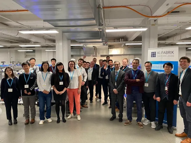 Zwei Demos der unterstützt von den Firmen BMW und Wittenstein beleuchteten zentrale Themen der KI.Fabrik, nämlich Central.AI, Production-as-a-Service, Collective Learning, Learning by Demonstration, Next Generation Technology (6G), Teleoperation, Digitaler Zwilling, und Generative AI.