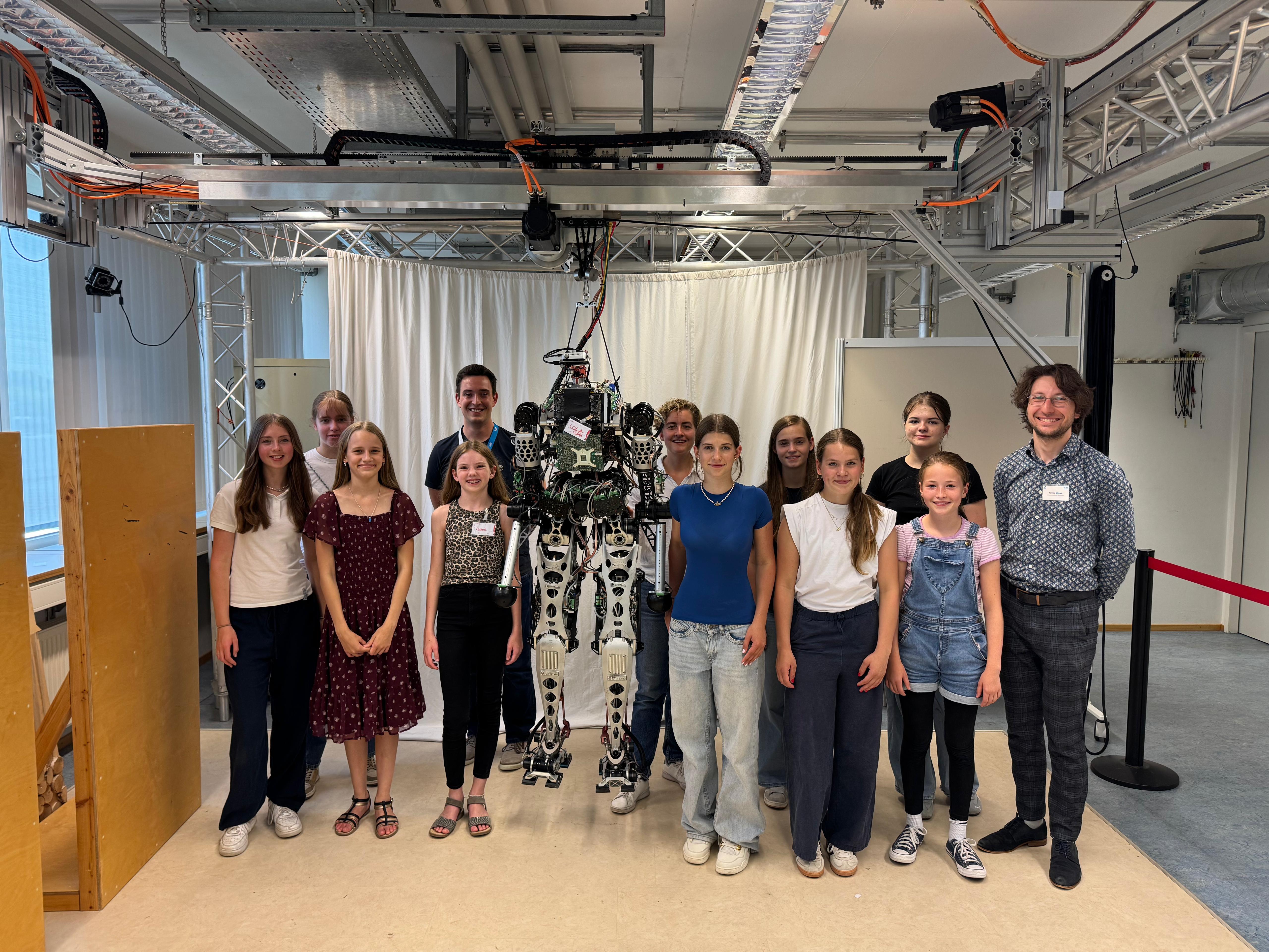 Unter dem Titel „LOLAs Abenteuer: Erlebe wie Roboter unsere Zukunft gestalten“ tauchten zwölf Teilnehmerinnen drei Tage lang in die spannende Welt der Robotik ein. Sie erlebten modere Technologien wie Motion Capture, Roboterarme und unseren humanoiden Roboter LOLA hautnah – und durften selbst kreativ werden! Mit Begeisterung choreografierten sie eigene Tänze, um daraus kurze Animationsfilme zu erstellen. Die Roboterarme wurden zu kleinen Baumeistern, die – programmiert von den Teilnehmerinnen – Figuren aus Holzklötzen bauten. Zum Abschluss gestaltete jede Teilnehmerin eine eigene LOLA-Figur, die auf einem selbst mit CAD entworfenen Sockel ihren Platz fand.