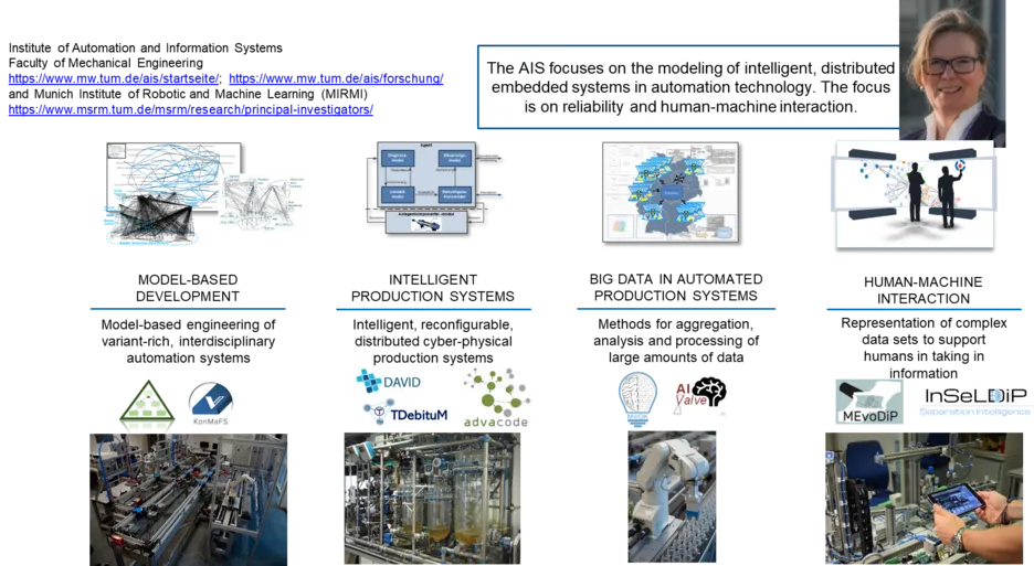 To increase product quality and reduce time to market both research areas model-based development approaches and quality management contribute directly. Indirectly also improved and integrated engineering tools and more adequate support during operation, which is grouped under human factors (usability), leads to the above mentioned goals. Due to the rising complexity in engineering and operation distribution is one measure to cope with complexity and therefore one key research topic of ais.