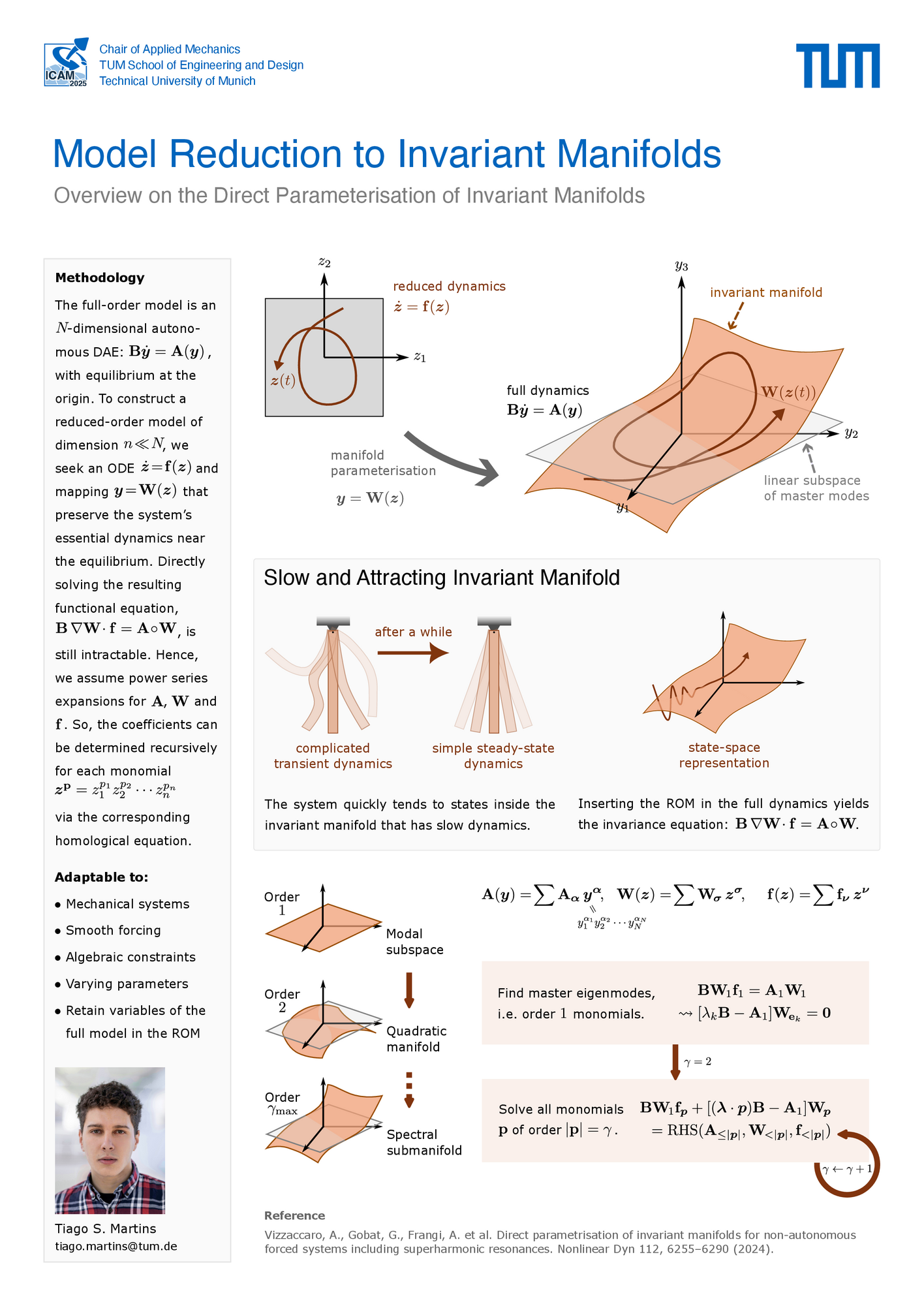 My academic journey in Aerospace Engineering has led me to a PhD focused on tackling the complex challenges in nonlinear structural dynamics. I develop robust computational frameworks to simulate and analyse systems exhibiting strong nonlinear behaviour. My expertise lies at the intersection of several advanced numerical techniques: I employ nonlinear solvers like the Harmonic Balance and Shooting methods for periodic solutions, implement nonlinear Finite Element Analysis (FEA) for spatial discretisation, and research nonlinear model order reduction. Specifically, I use invariant manifold theory, such as Spectral Submanifolds (SSM), to construct minimal-order models that capture the essential nonlinear dynamics of large-scale structures, enabling faster and more accurate simulations for structural dynamics.