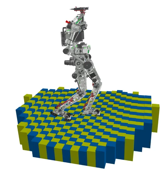 By “flexiblility” we mean the capacity of the robot to actually use a large portion of the robot’s physical capabilities. This is important, when stepping over or onto complex, previously unknown obstacles or when walking with very large steps. “Robustness” is the ability of the robot to recover from very large disturbances, due to external forces or errors in the environment model. This can only be achieved by large modifications of the originally planned motion of the system.