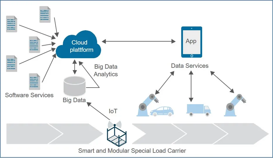 The objective of the joint project iSLT.NET is therefore to address these problems, to design a network of smart and modular special load carriers and to implement this network in a supply chain using a novel business model. As one of the first steps a standardized modular system for special load carriers is to be developed, which makes an industry-wide reconfiguration and reuse of the modules possible. Part of this modular system is the integrated IoT technology (Internet of Things), which will enable the decentralized collection and retrieval of data. The identification of process-relevant data in the context of load carrier management (e.g. location, loading condition, temperature, vibration, defects) will be analysed as well. A cloud platform with corresponding software services will be created to enable cross-company use of this data. Based on the collected data, these services will provide new functions for the participants and thus generate benefit for the entire supply chain.