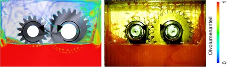 In the further project FVA 857 II, the potential of the Smoothed Particle Hydrodynamics (SPH) method for oil flow simulation of practical gearboxes is examined. In future projects, thermal CFD simulations can be used to investigate the heat balance of gears.
