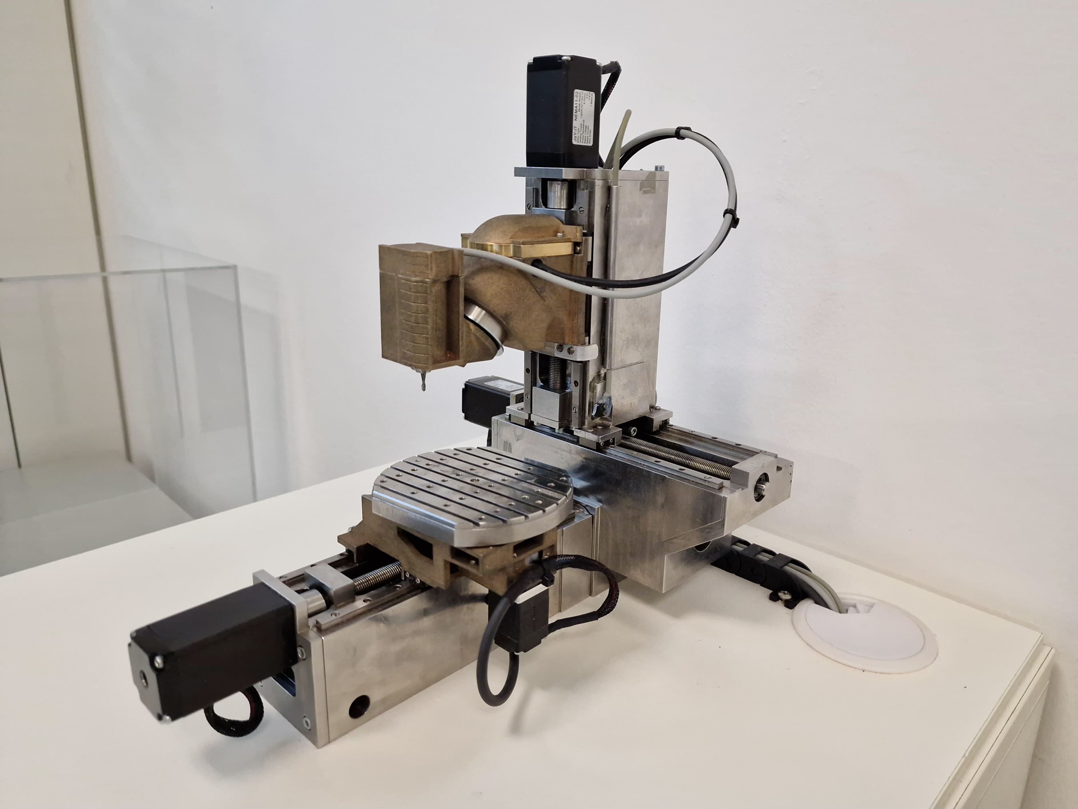 - Operation: Raspberry Pi 4 Model B with touchscreen and "Universal G-Code Sender" software, control of the servomotors: Arduino Mega with Ramps 1.4 Board