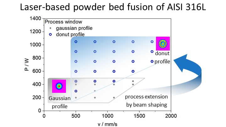 Nowadays, the exposure in laser-based powder bed fusion of metals (PBF-LB/M) is conducted vector-based with Gaussian intensity distribution and spot sizes in the range of 40 µm - 120 µm. In the research field “Innovative Process Strategies in PBF-LB/M“ state-of-the-art exposure is extended by strategies with spatial and temporally shaped laser radiation.