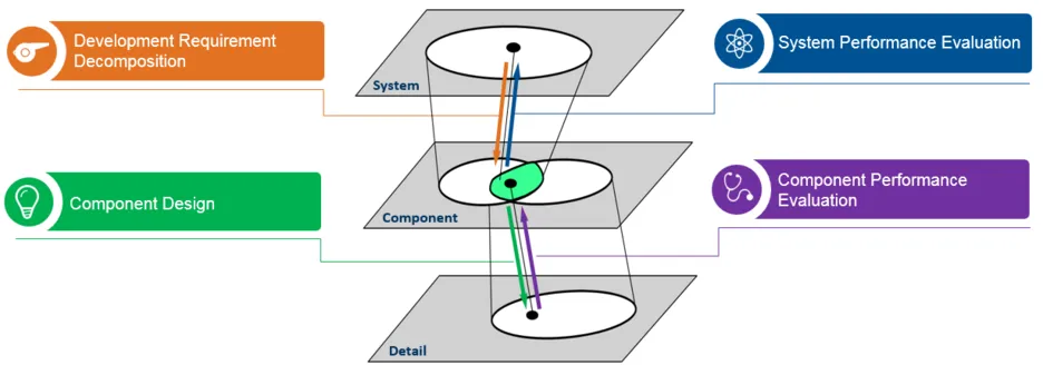 This project aims to develop a new design process for NVH engineering of complex mechanical systems by breaking down the noise requirements from the system level quantitatively to the component level based on the so-called Solution Space Engineering method (Development Requirement Decomposition). This way, the development of a complex system is decomposed into Component Design problems. The maximum admissible range of each design parameter is computed based on system and component performance evaluation. As long as the design parameter is kept in the derived range, the system requirements are guaranteed to be fulfilled. Quantitative component design goals provide clear guidance for engineers to identify effective NVH measures and conduct component development. In the end, the success of the product development will be verified through the Component Performance Evaluation and the System Performance Evaluation.