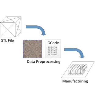 Data processing from a STL file to process specific GCode for a new droplet based additive manufacturing system
