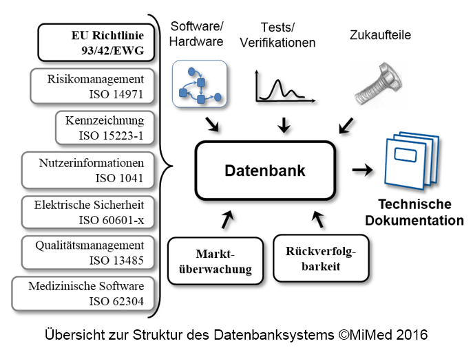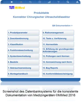 Die Zulassungsdokumentation erfolgt mit einem relationalen Datenbanksystem unter FileMaker Pro 14 Advanced und FileMaker 14 Server. Es setzt Kapitel der technischen Dokumentation konsistent um und ist lauffähig unter Windows und Mac. Der Zugang ist auch möglich per iPad und Webbrowser.