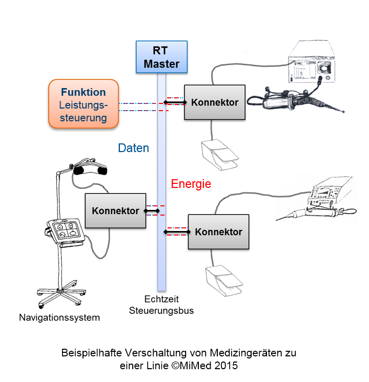 Im Zentrum dieses Projekts steht die Kommuni-kation aktiver chirurgischer Geräte (Fräse, Sauger, HF-Gerät, US-Dissektor,...) und Sensorsysteme (Navigation, Neuromonitoring,..) für chirurgische Eingriffe. Diese Geräte kommen bei chirurgischen Eingriffen nahezu aller Fachrichtungen (>15 Mio./Jahr in Deutschland) zum Einsatz.