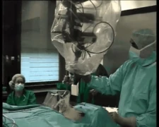 OTTO von Decke based on a SurgiScope Delta-3 kinematics with 6DoF. It was the first clinical used "hands-on" robot. The video shows the clinical case of the first patient.