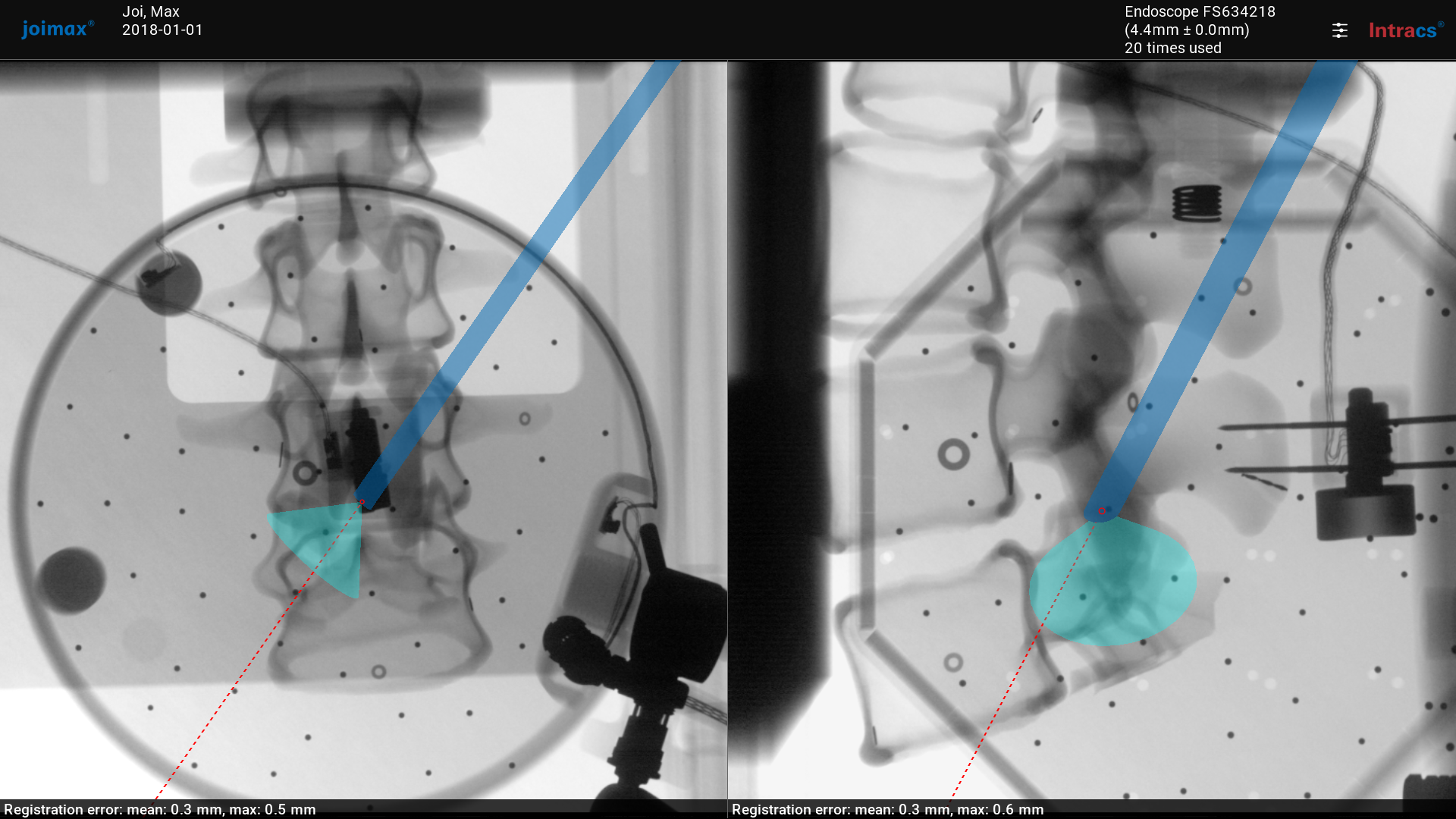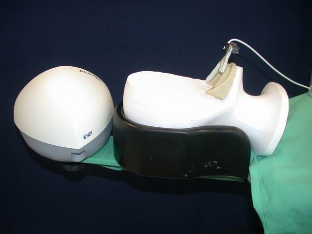 Results: The procedure was first published by Tim Lüth in April 1998 in Humbold-Spektrum. For this purpose, a stationary tracker with several active LEDs was attached to the IGT Flashpoint 5000 stereo camera system and a tracker was attached to the operating table or directly to the patient's head. Since the tracker geometry can be recognized relative to the patient in the CT image and the position of the image relative to the CT tracker is also known, the patient can be registered automatically. A similar system was implemented in a second project by Cyrill v. Tiesenhausen for the BGU Clinic in Frankfurt.