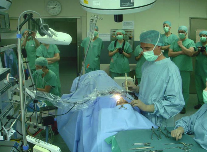 Objective: The Surgical Robotics Lab was started by three professors, Juergen Bier (Chief Surgeon, Maxillofacial Surgery) and Tim Lueth (Engineer/Computer Scientist), with support from Guenter Hommel. Tim Lüth started in March 1997 with students Markus Pritsch and Malte Stien in Grenoble, later joined by PhD students Andreas Hein, Malte Stien, Mustafa Demirtas, Jochen Albrecht (Queck) and, shortly thereafter, Christoph Thiede. Stefan Zachow completed his diploma thesis on 3D planning at the SRL. The clinical advisor was Dr. med., Dr. med. dent. Ernst Heissler. After his departure, Prof. Dr. Dr. Martin Klein became the main clinical advisor. For cardiac surgery, it has always been Ralf Sodian from 1998 to today. In ENT surgery, it was Gero Strauß and later Heinz Stammberger. When considering computer graphics, it is important to remember that until 1999, 3D graphics were only possible on special computers costing upwards of $100,000 and were reserved for a few laboratories. This changed at the end of 1999 when the first 3D graphics cards were installed in laptops, causing the number of programmers to increase dramatically. With a year, the price dropped to $1000 or less.