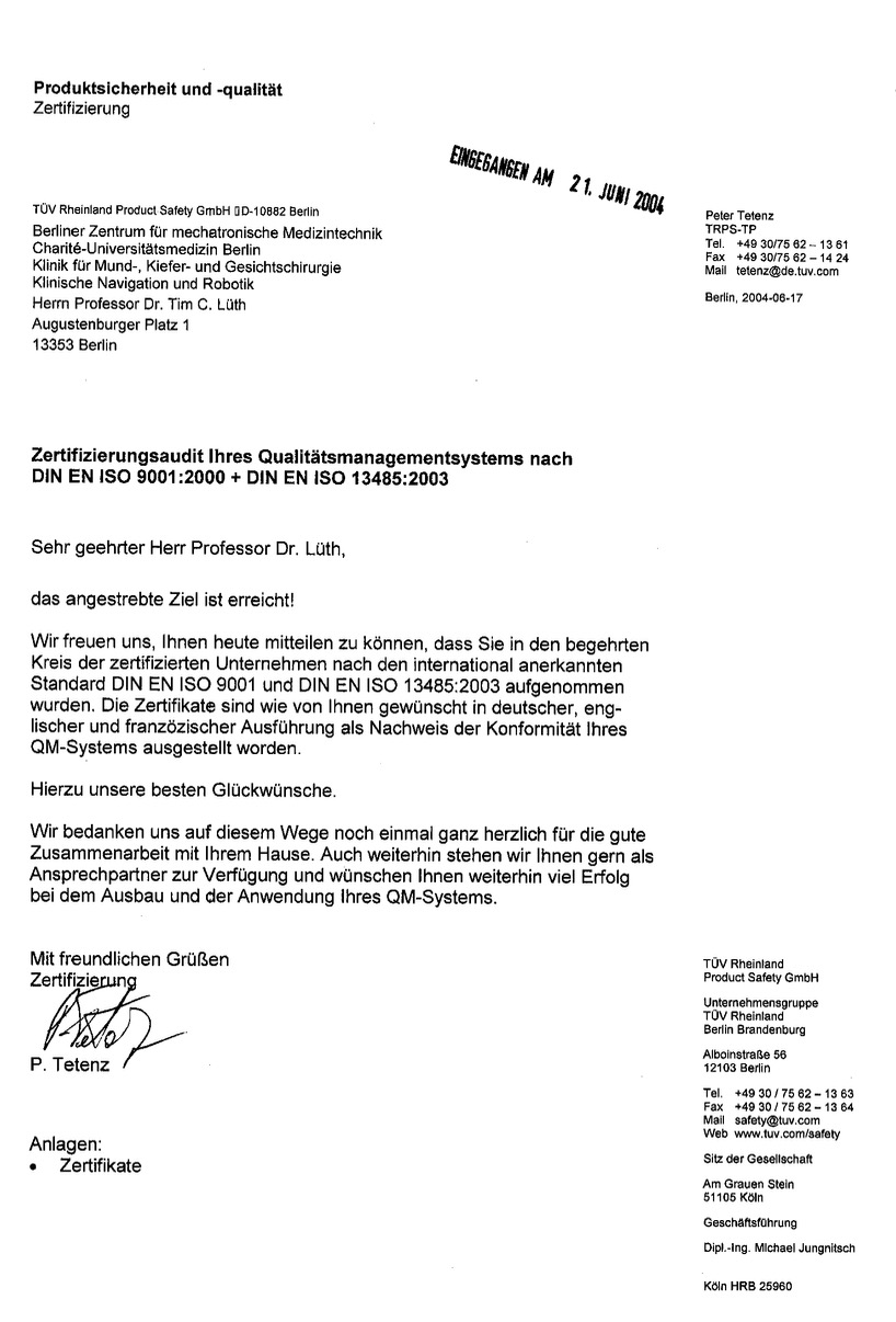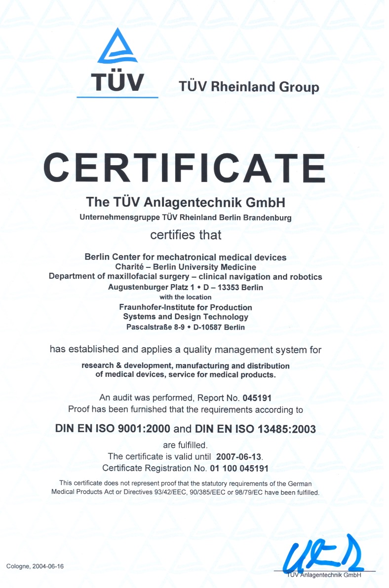 Scientists involved: Jürgen Bier, Tim Lüth, Günter Hommel, Roland Felix, Ernst Heissler, Norbert Hosten, Martin Klein, Ralf Sodian, Gero Strauß