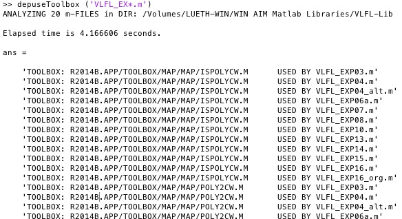depuseToolbox(sstr)- analyzes the current directory for the use of MATLAB Toolbox procedure |