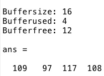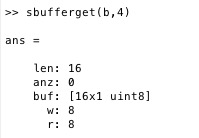 | % sbufferinfo(b) - returns information on a struct buffer % (by Tim Lueth, VLFL-Lib, 2015-DEZ-08 as class: USB INTERFACE) % % the basic fnctns are: % sbuffercreate - create a buffer % sbufferinfo - status info about the buffer % sbufferwrite - write data into the buffer % sbufferget - read data out of the buffer % (Status of: 2017-01-29) % % See also: sbuffercreate, sbufferwrite, sbufferget % % [f,l,u]=sbufferinfo(b) % === INPUT PARAMETERS === % b: struct buffer % === OUTPUT RESULTS ====== % f: number of free bytes % l: maximum number of bytes % u: number of used bytes % |