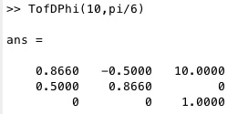 TofDPhi(D,Phi)- returns a 3x3 HT matrix for 2D link |