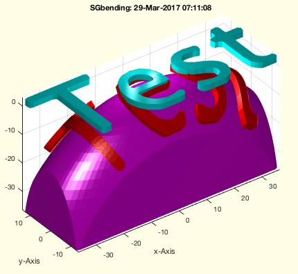 SGbending(SG,Rx,de,Ry,Rz,cent)- beates a solid geoemtry on a cylinder or spherical ellipsoid |