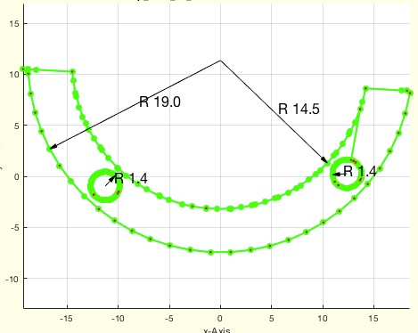 | % PLof3dist(d1,d2,d3,srt) - creates a 3P Tracker geometry using the given distances % (by Tim Lueth, VLFL-Lib, 2017-MAI-24 as class: ANALYTICAL GEOMETRY) % % See also: cross2circ % % [PL,n,d3]=PLof3dist(d1,d2,[d3,srt]) % === INPUT PARAMETERS === % d1: distance in x % d2: radius at second point % d3: radius at third/first point point; % srt: sort by length; default is false % === OUTPUT RESULTS ====== % PL: Point list % n: area of triangle % d3: d3 % % EXAMPLE: % PLof3dist(35,30,45) % PLof3dist(35,30,45,true) % |