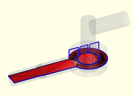 | % SGof2CPLsz(CPA,CPB,z,stype,ctype) - returns a solid defined by 2 contours and height % (by Tim Lueth, VLFL-Lib, 2017-APR-24 as class: SURFACES) % % This fnctn is the same as SGof2CPLz but supports more than one contour! % The optimal result depends on the expectations of the user. Consider % different options for stype carefully: % "number" of points, i.e. 1:nmax % "length" of contour, i.e. 0:sum(edge length) % "angle" of contour, i.e. 0:sum(abs(edge angle)) % "center" of contour, i.e. 0:360 degree % also the starting point ctype ('rot' or 'min'); % Quite optimal procedure to find the walls between two planar contours % without adding new points. The number of faces is na+nb. % The resulting vertex list SG: % SG.VL=[VLaddz(CPA,0);VLaddz(CPB,z)]; % SG.FL=[FLA;FLB;FLW]; % (Status of: 2017-06-12) % % Introduced first in SolidGeometry 3.8 % % See also: SGof2SGT, SGof2T, SGof2CVL, SGof2CPLz, SGofCPLzchamfer, % SGof2CPLzheurist, SGof2CPLzbranch % % [SG,FLW,FLA,FLB]=SGof2CPLsz([CPA,CPB,z,stype,ctype]) % === INPUT PARAMETERS === % CPA: ONE bottom Contour % CPB: ONE top Contour % z: height of the solid % stype: "number", "length", "angle", "center"; default is "length" % ctype: "rot" or "miny"; default is "rot" % === OUTPUT RESULTS ====== % SG: Solid Geoemtry; VL=[CPA;CPB] % FLW: Face list of Wall % FLA: Face list of CPA % FLB: Face list of CPB % % EXAMPLE: % CPA=[PLcircle(5.1,16);NaN NaN; PLcircle(2,4)]; % CPB=[PLstar(5,16,[],[],[],0.5);NaN NaN; PLcircle(2)]; % SGof2CPLsz(CPA,CPB,5) % % See also: SGof2SGT, SGof2T, SGof2CVL, SGof2CPLz, SGofCPLzchamfer, % SGof2CPLzheurist, SGof2CPLzbranch % |