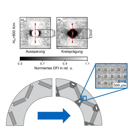 Moderne elektrische Synchronmaschinen stellen hohe Anforderungen an die Führung des magnetischen Flusses. Eine starke magnetische Kopplung zwischen Rotor und Stator ist dabei für eine hohe Drehmomentdichte essenziell. Bei permanentmagneterregten Synchronmaschinen (PMSM) ist eine hohe magnetische Anisotropie des Rotors zur Bildung des Drehmoments notwendig. Diese Anisotropie wird konventionell über schergeschnittene Aussparungen, sogenannte Flussbarrieren, erzeugt, welche jedoch zu einer mechanischen Schwächung des Rotors führen. Im Rahmen von Projekten im SPP2013 konnte bereits gezeigt werden, dass das gezielte Einbringen von Eigenspannungen durch Prägen geeignet ist, um Flussbarrieren zu erzeugen. Ziel dieses Erkenntnistransferprojekts ist es, diese Erkenntnisse, gemeinsam mit dem Industriepartner Mubea, auf den Anwendungsfall eines Serienrotors zu übertragen. Am Ende steht ein direkter Leistungs- und Effizienzvergleich des Innovations-, gegenüber dem Serienrotor.