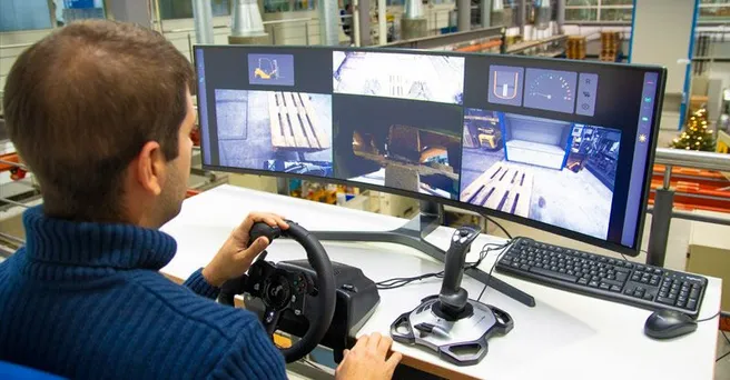 Als zweites anwendungsnahes Forschungsthema für die Industrie, präsentierten die Kollegen:innen einen teleoperierten Gabelstapler. Dabei erforschen wir Objekterkennung sowie automatisierte Funktionen und Bewegungen.