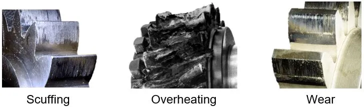 Konventionelle Stirnradverzahnungen, die hohen mechanischen Belastungen ohne Schmierung mit flüssigem Schmierstoff („fluidfrei“) ausgesetzt sind, zeigen nach kurzer Betriebsdauer Schäden wie Verschleiß, Fressen und Heißlaufen (siehe Abb. 1). Für den sicheren Betrieb fluidfrei geschmierter Verzahnungen darf die systemabhängige Wärmegrenzleistung, die von den Verlustleistungen und der Wärmeabfuhr abhängt, nicht überschritten werden. Unterhalb dieser Grenze ist Verschleiß der fluidfrei geschmierten Zahnflanken infolge des kontinuierlichen Materialabtrags lebensdauerbegrenzend.