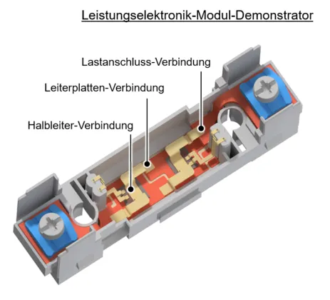 Im Rahmen von FlaMe wird auch die Anwendung von hochbrillanter Laserstrahlung im sichtbaren Wellenlängenbereich (515 nm) zum Fügen der stromführenden Kupferkompo-nenten erforscht. Hierbei soll das Laserstrahlschweißen als Fügetechnologie Drahtbondprozesse substituieren. Diese Innovation ermöglicht eine höhere Fertigungspräzision, erhöht die Systemzuverlässigkeit und verbessert die thermische Leistungsfähigkeit der Module. In Kombination mit Industrierobotern für die Handhabung und Positionierung der Komponenten und einem Multi-Sensor-Ansatz für eine datengetriebene Qualitätssicherung entsteht so eine hochflexible und robuste Wertschöpfungskette. Ein weiterer Schwerpunkt von FlaMe liegt auf der Verwendung innovativer Halbleitermaterialien mit breitem Bandabstand, wie Siliziumkarbid und Galliumnitrid. Diese Materialien können höhere elektrische Spannungen, Temperaturen und Schaltfrequenzen als Silizium bewältigen und tragen zur Reduzierung von Schalt- und Umwandlungsverlusten bei, was die Effizienz im Betrieb erhöht. Insgesamt verfolgt FlaMe ein Fertigungskonzept, das darauf abzielt, die Prozesskomplexität und den Ressourcenbedarf durch die Substitution herkömmlicher Verfahren zu reduzieren und gleichzeitig die Flexibilität zu erhöhen.
