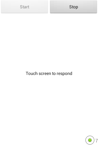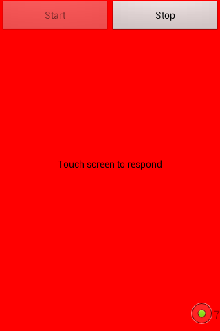 With the start and stop button an experiment can be started. After an experiment some stats are available at the buttom of the screen (Average reaction time, hit rate and number of stimuli).