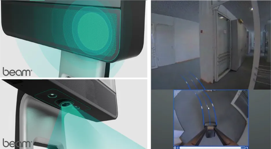 Das Telepräsenzsystem Beam (enhanced) von Suitable Technologies wird zur Untersuchung sozialer Interaktionen in Wizard-of-Oz Experimenten eingesetzt (134,4 cm x 21,7 cm x 41,7 cm, 17,7 kg). Das System verfügt über eine Laufzeit von 7h, verwendet zwei integrierte WiFi Antennen zur Kommunikation (Dual-band 802.11 a/b/g/n, LTE verfügbar über USB) und erreicht Höchstgeschwindigkeiten von ca. 1 m/s. Der kinematische Aufbau mit zwei angetriebenen Rädern in der Front und zwei nachlaufenden Casterwheels gleicht dem des Parallax Stingray. Klare Soundwiedergabe auf beiden Seiten der Verbindung durch drei vorwärts- und ein rückwärtsgerichtetes Mikrophon (inkl. Echo- und Rauschunterdrückung). Die speziell angefertigten integrierten Lautsprecher ermöglichen klare und natürlich wirkende Soundwiedergabe. Zwei angebrachte HDR Kameras ermöglichen einen weitläufigen vorwärts gerichteten sowie nach unten gerichteten Blickwinkel, um das Fahren mit dem Beam sicher und einfach zu gestalten.