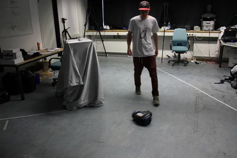 Der Parallax Stingray ist aufgrund seiner mittleren Größe (280 mm x 330 mm x 140 mm, ca. 1 kg) geeignet für eine Vielzahl von Untersuchungen, insbesondere Untersuchungen zu robotischem Bewegungsverhalten. Das System kann gegenwärtig entweder über Programmierung eines Arduino Mikroprozessors oder die Softwareumgebung Unity in Kombination mit Bewegungserkennung der HTC Vive Hardware angesteuert werden. Der agile Roboter verfügt über den größtmöglichen Spielraum zur Bewegungsgestaltung. Durch zwei getrennte Motoren werden die vorderen Räder angetrieben. Hinten verfügt er über ein omnidirektionales Rad, durch das auch auf der Stelle drehen möglich wird. Er kann sowohl präzise weiträumige Trajektorien, als auch Bewegungsmuster auf engem Raum darstellen. Es kann eine maximale Beschleunigung von ca. 1,2 m/s2 und eine maximale Geschwindigkeit ca. 2 m/s erreicht werden.