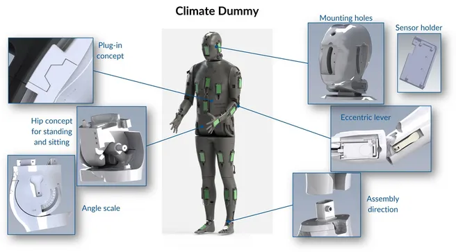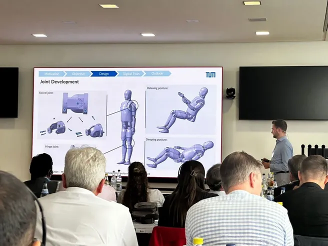 Manuel Kipp from the Chair of Ergonomics showed an interesting, cost-effective climate dummy designed with RAMSIS and produced using additive manufacturing. The dummy is also used as a digital twin for CFD simulations for evaluating thermal comfort in complex environments, and it allows for open-source measurements using Python.