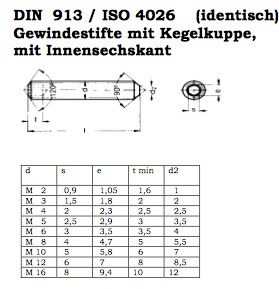 DIN913(M)- returns the DIN913/ISO4026 table for a metric threads |