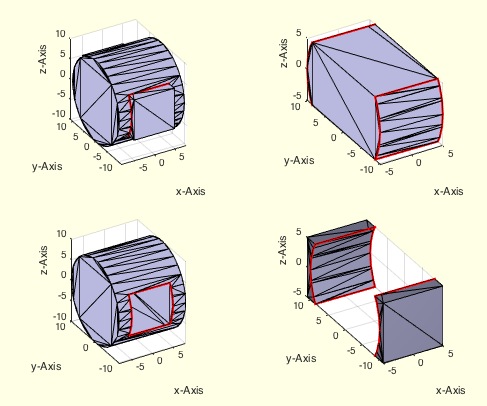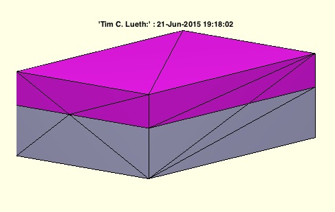 | %% PUBLISHABLE EXP_2015_08_07 EXPERIMENT TO XOR TWO SOLIDS BY DELAUNAY TRIANGULATION INCLUDING CROSSING POINTS % (by Tim Lueth, VLFL-Lib, 2015-AUG-07 as class: EXPERIMENTS) %% % exp_2015_08_07 - EXPERIMENT To XOR two solids by delaunay triangulation % including crossing points % (by Tim Lueth, VLFL-Lib, 2015-AUG-07 as class: EXPERIMENTS) % % exp_2015_08_07 % |