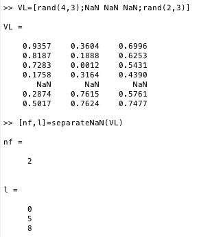 separateNaN(VL,i)- separates List by NaN rows entries |