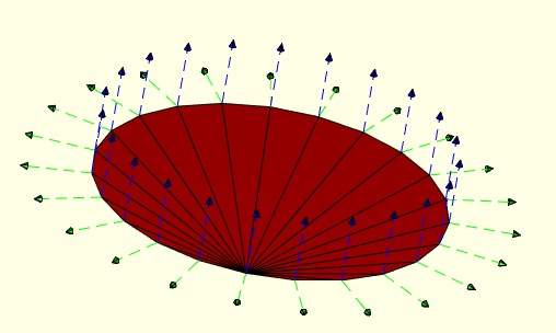 | % vertexNormalbyFN(TR3) - calculates the vertex normals based on the facet normals % (by Tim Lueth, VLFL-Lib, 2015-AUG-21 as class: SURFACES) % % This fnctn is sometimes required to improve the result of MATLAB's % vertexNormal fnctn. It is about 40 times slower (Status of: 2017-07-08) % % Introduced first in SolidGeometry 2.4 % % See also: vertexNormal % % [NNL,NL]=vertexNormalbyFN(TR3) % === INPUT PARAMETERS === % TR3: triangulation % === OUTPUT RESULTS ====== % NNL: Normal vector list % NL: vector sum of the face norms attached to the vertex % % EXAMPLE: % vertexNormalbyFN(SGbox([30,20,10])) % vertexNormalbyFN(SGsample(25)) % % See also: vertexNormal % |