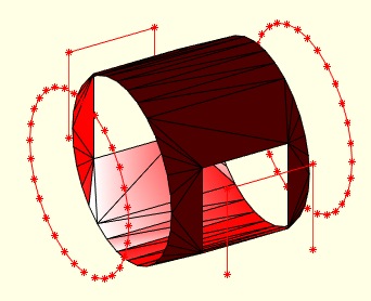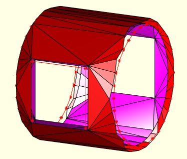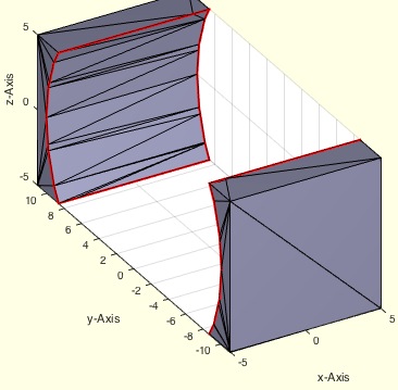 | % SGcut2(SG,z) - Cuts a solid geometry by inserting vertices and facets % (by Tim Lueth, VLFL-Lib, 2015-JUN-21 as class: SURFACES) % % returns one modified solid that has additional vertices and facets % along the cutting plane. In contrast to SGcut is delivers always % exactly one solid and accepts only one z coordinate. If the fnctns is % called twice with the same z-coordinates, no additional points are % created. For this purpose it was necessary to modify the fnctn % SCslicer. (Status of: 2015-06-21) % % See also: SGcut % % [SGA]=SGcut2(SG,z) % === INPUT PARAMETERS === % SG: Solid Geometry (VL,FL) % z: z value for slicing % === OUTPUT RESULTS ====== % [SGA]: Solid below cutting plane (and above z2) % % EXAMPLE: SGcut2 (SGbox([30,20,10]),1); % |