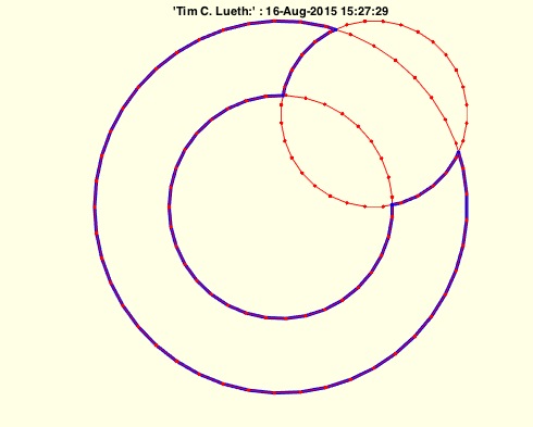 | % tangentRP(R,p,pc) - returns the two tangential points of a circle % (by MATLAB-CENTRAL, VLFL-Lib, 2015-AUG-22 as class: ANALYTICAL GEOMETRY) % % Thanks to Laurens de Smedt for finding it at MATLAB-Central % (Status of: 2017-01-31) % % See also: center3P, center4P, tangente, tangenteRP % % [q1,q2]=tangentRP(R,p,[pc]) % === INPUT PARAMETERS === % R: Radius of the circle % p: point to match % pc: optional center of the circle; default is [0 0] % === OUTPUT RESULTS ====== % q1: point 1 % q2: point 1 % % EXAMPLE: tangentRP(10,[20 20]) % |