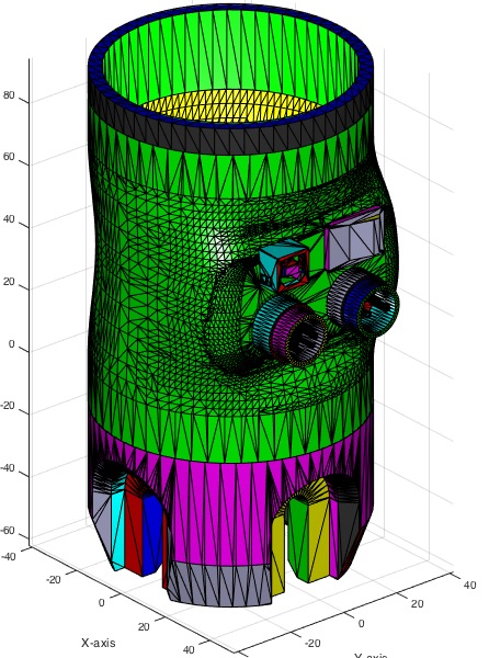 | % VLELofTR(TR) - returns the edge constraints of a triangulation % (by Tim Lueth, VLFL-Lib, 2015-AUG-15 as class: TETRAHEDRONS) % % returns the edge constraints of a triangulation (Status of: 2015-08-15) % % [VL,EL,FL]=VLELofTR(TR) % === INPUT PARAMETERS === % TR: Triangulation (nx4 or nx3 or nx2) % === OUTPUT RESULTS ====== % VL: Vertex List (Point List) % EL: Facet List (Constraints) % FL: Facet List (ConnectivityList or freeBoundary) % % EXAMPLE: % [VL,FL]=VLELofTR(exp_2014_12_23 (SGsample(16))); close all; VLFLfigure; % view(-30,30); VLFLplots(VL,FL); % |