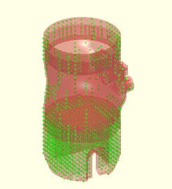 | % SGofSurface(OVL,OFL,t,d,s) - returns a fitting solid relativ to a surface % (by Tim Lueth, VLFL-Lib, 2015-JUL-30 as class: SURFACES) % % This fnctn supports also facets list of type cell: {FL1,FL2,FL3}. % It also supports facets list separated by NaN: [FL1;NaN NaN NaN;FL2] % IT DOES NOT SUPPORT SURFACES WITH HOLES YET (Status of: 2017-04-17) % % See also: VLtransN % % [SG,VL1,VL2,FLW]=SGofSurface(OVL,OFL,[t,d,s]) % === INPUT PARAMETERS === % OVL: Vertex list of a surface (nx3) % OFL: Facet list of a surface (nx3) % t: thickness of the solid; default is 0.5 % d: distance from the surface; default is 0.3 % s: streching of the border line; default is 0 % === OUTPUT RESULTS ====== % SG: resulting solid that can be attached to the surface % VL1: VL oved along d % VL2: VL moved d*ez % FLW: Facet of list wall [VL1;VL2] % |