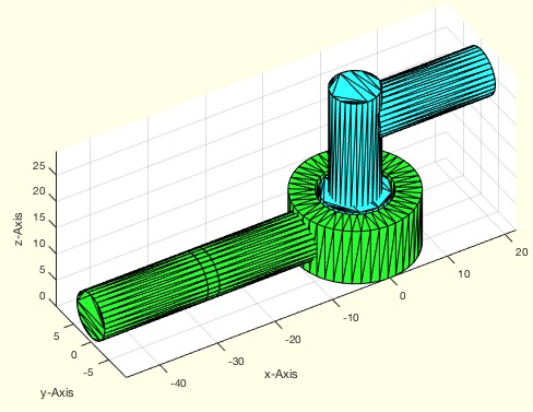 | % SGofCPLT(CPL,T) - returns a extruded SG from a CPL and a final T matrix % (by Tim Lueth, VLFL-Lib, 2016-DEZ-15 as class: MODELING PROCEDURES) % % SGofCPLT uses SGofCPLz. The x/y values of the translation Vector are % not used to guarantee that the cross sectional cut is unchanged. % (Status of: 2017-03-19) % % See also: SGofCPLz % % SG=SGofCPLT(CPL,[T]) % === INPUT PARAMETERS === % CPL: CPL of several contours % T: Transformation Matrix % === OUTPUT RESULTS ====== % SG: VL,FL,T,Tname % % EXAMPLE: Create a cylinder: % SG=SGofCPLT(PLcircle(10)); % SGplot(SG) % |