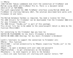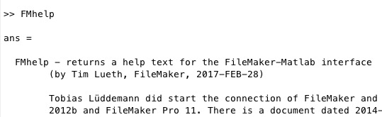 FMhelp- returns a help text for the FileMaker-Matlab interface |