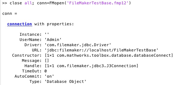 FMopen(fname,user,passw)- opens a FileMaker Database by the FileMaker Application |