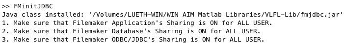 FMinitJDBC(cname)- checks the existance of the FileMaker JDBC driver and copies it into the javaclasspath |