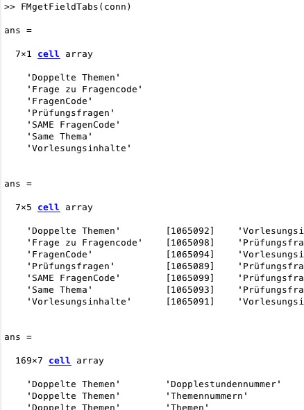 FMgetFieldTabs (conn)- returns structure of the FielMaker database |