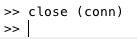 FMclose(conn)- closes a connection |