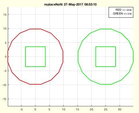 | % CPLisccwinout(CPL) - returns which contour has the right orientation wrt shell and orientation % (by Tim Lueth, VLFL-Lib, 2017-MAI-27 as class: CLOSED POLYGON LISTS) % % Depending on the outwards level, the orientation of a contour is: % 0 = outward = ccw % 1 = inward = cw % 2 = outward = ccw % 3 ..... % if length(corr)==sum(corr); the contour is correct (Status of: % 2017-05-27) % % See also: CPLisccw, CPLsortinout, CPLisccwcorrected % % [corr,cio,ccw]=CPLisccwinout(CPL) % === INPUT PARAMETERS === % CPL: Contour polygon list % === OUTPUT RESULTS ====== % corr: true if correct % cio: level of contour (0=most outwards) % ccw: ccw direction % % EXAMPLE: % FCPL=replaceNaN(CPLsample(12),3,flipud(separateNaN(CPLsample(12),3))); % CPLisccwinout(FCPL) % CPLisccwinout(CPLsample(13)) % |