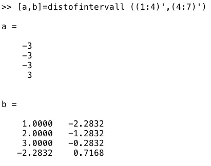 distofintervall(a,b,inter)- distance within an intervall |
