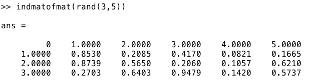imat(D)- returns a matrix including row column and column row |