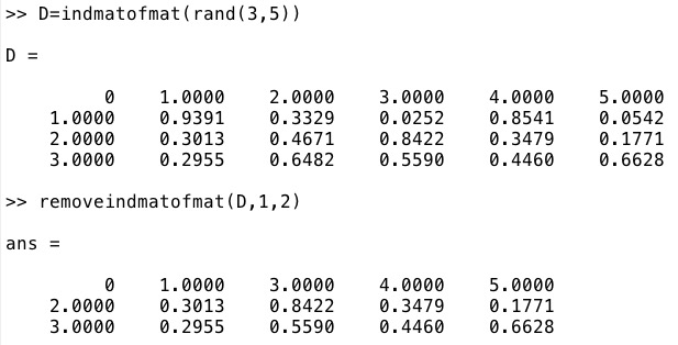 removeimat(D,r,c)- removes a row and a column of a indexed matrix |