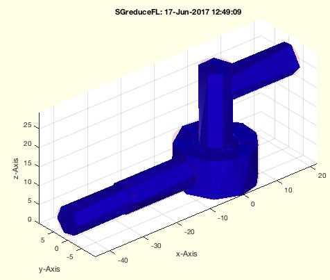 | % SGreduceVLFL(SG,f) - returns a solid with reduced % (by Tim Lueth, VLFL-Lib, 2017-JUN-17 as class: SURFACES) % % speed optimized; uses reducepatch. % can be used to reduce facet related to the original vertex list (Status % of: 2017-06-17) % % See also: reducepatch, findVL % % [SG,FL,vi]=SGreduceVLFL(SG,[f]) % === INPUT PARAMETERS === % SG: Original Solid Geometry % f: reduction factor or number of facets per % === OUTPUT RESULTS ====== % SG: SG with reduced vertices and facets % FL: Facet List related to original solid geometry (slows down by findVL) % vi: index of new vertices related to original solid geometry % % EXAMPLE: % a=SGsample(17); a=SGstripfields(a) % SGreduceVLFL(a,800) % SGreduceVLFL(a,0.5) % [~,FL]=SGreduceVLFL(a,0.1), VLFLplot(a.VL,FL) % |